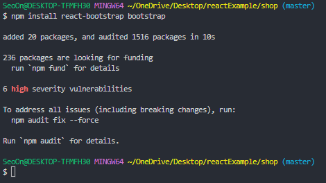 npm install react-bootstrap bootstrap