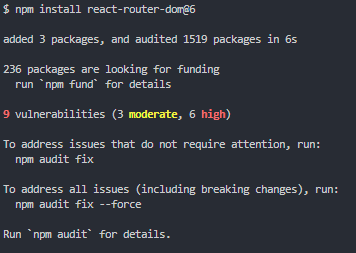 npm install react-router-dom@6터미널에서 프로젝트 디렉토리에 위와같은 명령어 npm install react-router-dom@6 를 입력하면 router 라이브러리가 설치된다.
