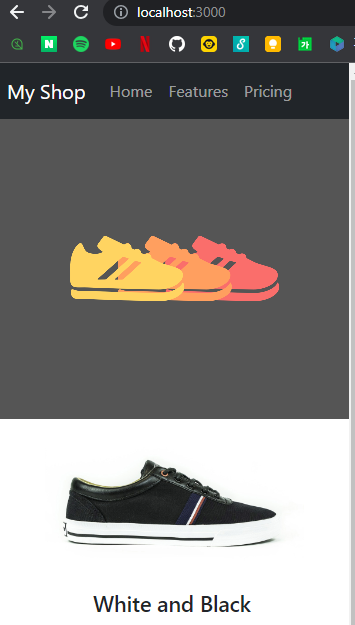 <Route path="/detail" element={<Detail></Detail>} /> // element속에 컴포넌트 태그를 넣는다. // Detail 컴포넌트 생성 function Detail() { return ( <div className="container"> <div className="row"> <div className="col-md-6"> <img src="https://codingapple1.github.io/shop/shoes1.jpg" width='100%'></img> </div> <div className="col-md-6"> <h4 className="pt-5">Product Name</h4> <p>Product Desc</p> <p>120000</p> <button className="btn btn-danger">Order</button> </div> </div> </div> ) }