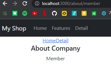 // 부모 Route의 path를 이어받아 사용할수있다. <Route path="/about" element={<About />}> // path: /about <Route path="member" element={<div>Member</div>} /> // path: /about/member <Route path="location" element={<div>Location</div>} /> // path: /about.location </Route>