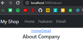 // 부모 Route의 요소를 함수로 선언 function About() { return ( <div> <h4>About Company</h4> <Outlet></Outlet> // Outlet 태그속에 자식 Route 요소태그가 들어간다. </div> ) }<Route path="/about" element={<About />}> // 부모 Route 사용 // 자식 Route의 element가 Outlet 태그로 들어간다. <Route path="member" element={<div>Member</div>} /> <Route path="location" element={<div>Location</div>} /> </Route>728x90반응형'Front-end > React' 카테고리의 다른 글