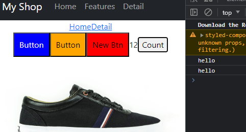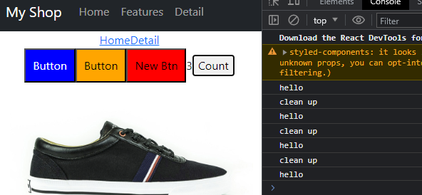 count를 클릭 할 때마다 hello 로그가 찍힌다.