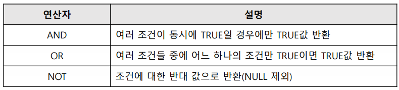 논리연산자란 여러 개의 제한 조건 결과를 하나의 논리 결과로 만들어준다.