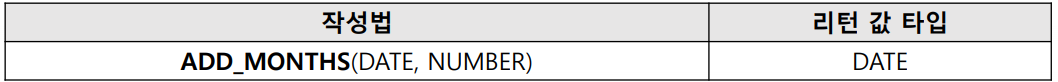ADD_MONTHS란 인자로 전달받은 날짜에 인자로 받은 숫자만큼 개월 수를 더하여 특정 날짜 반환한다.