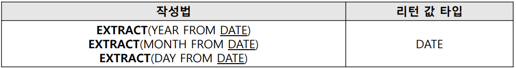 EXTRACT이란 년, 월, 일 정보 추출하여 반환한다.