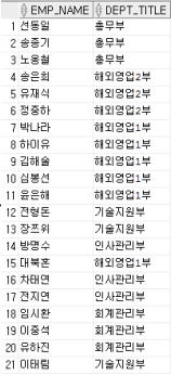 DEPT_TITLE을 옆에 합쳐 조회한다.