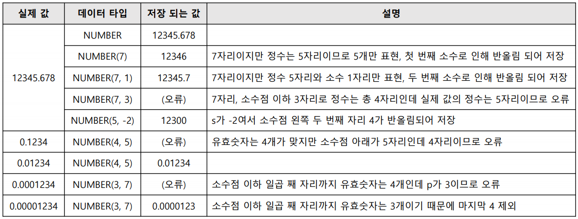 NUMBER란 숫자 데이터로, 길이 지정 가능하다.