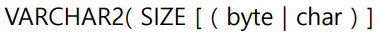 VARCHAR2란 가변길이 문자 데이터로 최대 2,000 Byte를 저장할 수 있다.
