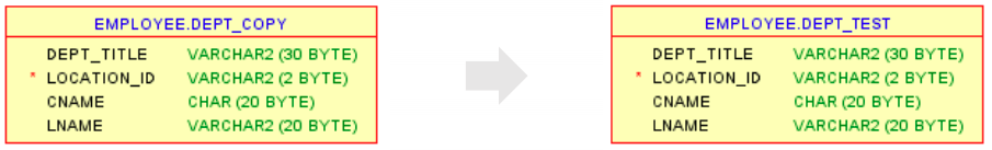 ALTER TABLE DEPT_COPY RENAME TO DEPT_TEST;또는 이러한 방식으로 바꿀 수 있다.