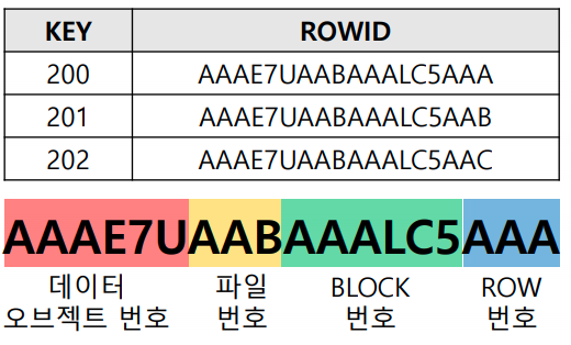 인덱스 안에 ROWID가 있는데 ROWID는 DB 내 데이터의 공유 주소이다.