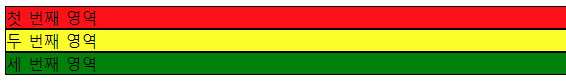 <div id="div1">첫 번째 영역</div> <div id="div2">두 번째 영역</div> <div id="div3">세 번째 영역</div>