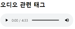 audio란 웹 브라우저에서 플러그인의 도움 없이 음악을 재생할 수 있게 만들어주는 태그이다.