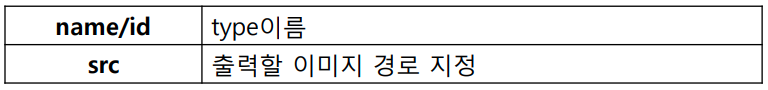 <input type="image" src="이미지 경로" alt="제출버튼">image 속성 값으로는 src가 있다.